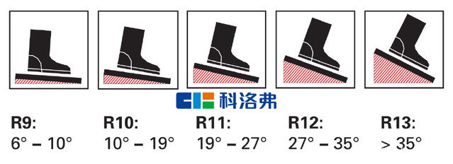R10> 10° - 19°正常洗手間、學校廚房、食品倉庫及停車場等一般人比較有滑倒風險的場所