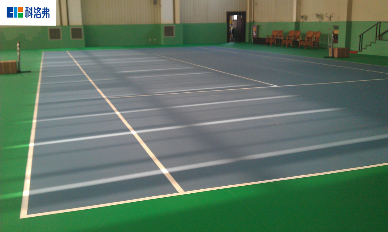 網球運動最早起源于英國。由于網球運動的激烈程度對地板的耐磨性有很高的要求,PVC塑膠運動地板具有良好的耐磨性及韌性,能夠很好的勝任運動員對地板的要求。同時PVC塑膠運動地板具有良好的防滑性,能夠是運動員的競技水平得到極大的提升,同時由于PVC塑膠運動地板的良好的減震性能夠很好的保護運動員的踝關節、膝關節等,是運動員在體驗運動樂趣的同時能夠很好的保護自己。 網球運動地板板材規格通覽: 單卷寬1.5m/1.8m 卷長20m(線內) 面層紋理:荔枝紋/寶石紋/沙地紋 總厚度:3.5mm/4.5mm/其他 顏色:天藍/草綠 場地線總長寬:23.77mX10.97m 地板總長寬:36.6mX18.3m 地板總面積:669.78㎡