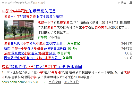 5月31日,新建不久的成都市成華區(qū)教科院附屬小學(xué)疑因跑道有毒,近2000名學(xué)生于昨日搬回了老校區(qū)青龍小學(xué),目前新學(xué)校內(nèi)除了保安等人員外,操場、教室未見學(xué)生上課。