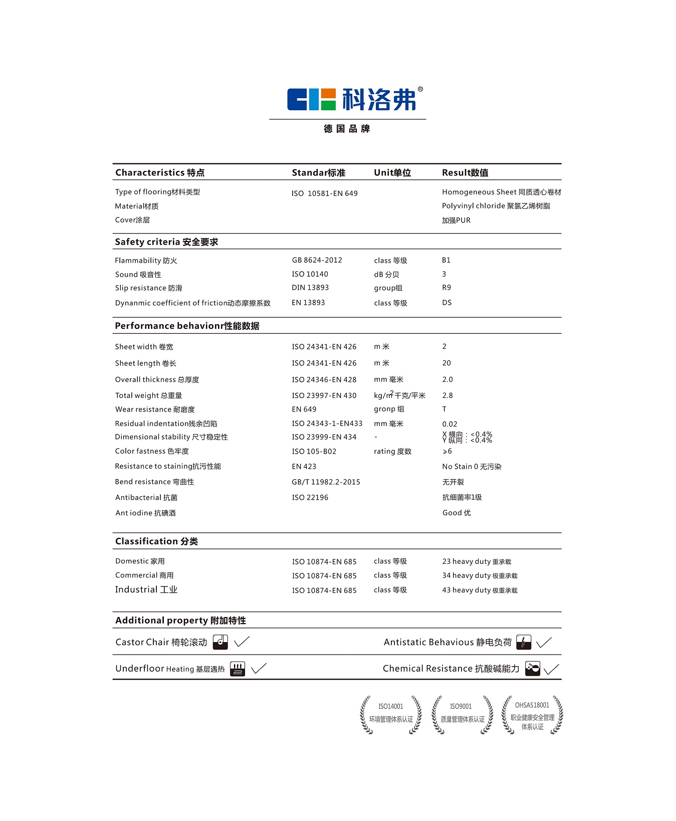 科嘉系列無方向同質(zhì)透心PVC地板