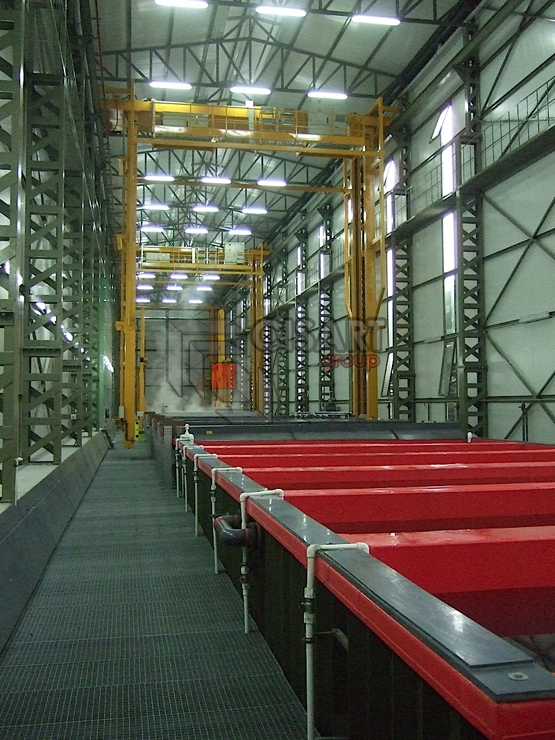 -建筑用鋁型材的陽極氧化和電解著色生產線,有水平和垂直兩種形式;
