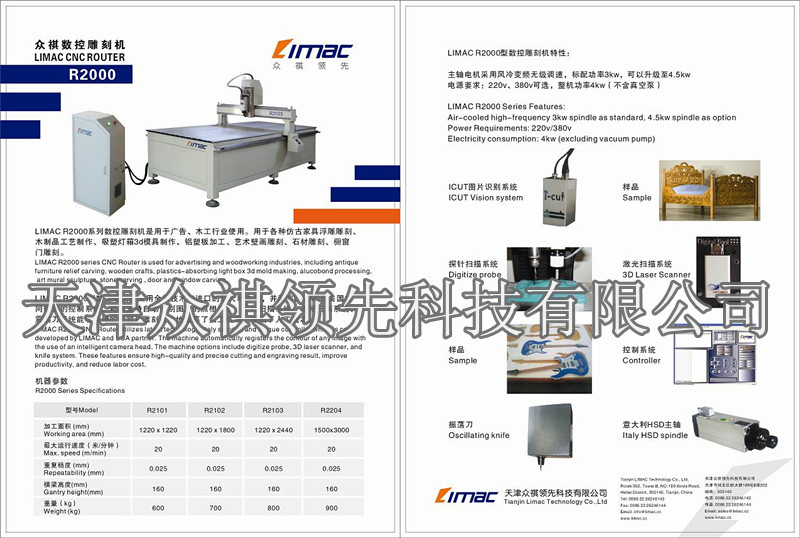 天津眾祺LIMAC R2000型數(shù)控雕刻機(jī)采用全新技術(shù)和進(jìn)口的意大利主軸,并配有LIMAC和美國共同研發(fā)的控制系統(tǒng)、可以支持自動識別圖片的照相系統(tǒng)、探針掃描系統(tǒng)、激光掃描系統(tǒng)、震蕩刀系統(tǒng)能夠精確的切割和雕刻極大的提高了人工效率,降低人工成本