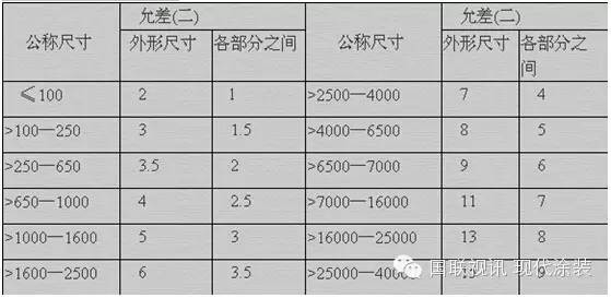 ②表1中焊接結(jié)構(gòu)件各部分之間的允差指該件矩形斷面對角線、平面的相對不平度等的允差。
