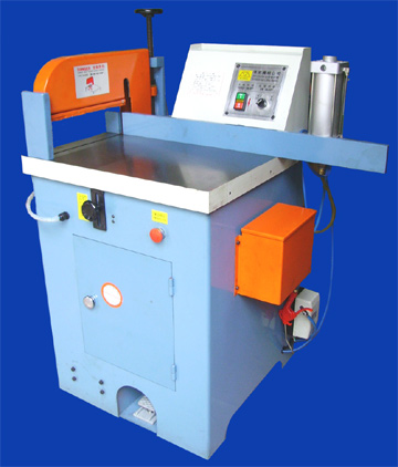 455SA半自動高速鋁材切割機,采用鎢鋼圓鋸片切割,機器鋸片轉速每分鐘3200轉,切割鋁材斷面光潔無毛邊,斷面不需再加工,機器安全性能良好,腳踏氣動開關,鋸片由下往上切割,安全可靠,特別適合鋁制產品切割下料,散熱鋁材,電腦U盤,MP3外殼鋁材等各種銅鋁制及非金屬產品精度有要求的切割下料。 特點: 1.隱藏式鋸片,低噪音,安全性高。 2.腳踏式開關,自動壓料,鋸料。 3.使用12mm橡膠塊壓料,不易損壞工件 4.可單支或多支一起鋸切。 5.800mm長入料導板可提高鋸切精度。 6.自動兩側噴油,油量可分開調整,切面無毛邊,鋸片更耐用。 7. 本機器經電腦機械加工,鋸切精確度高,且操作簡易