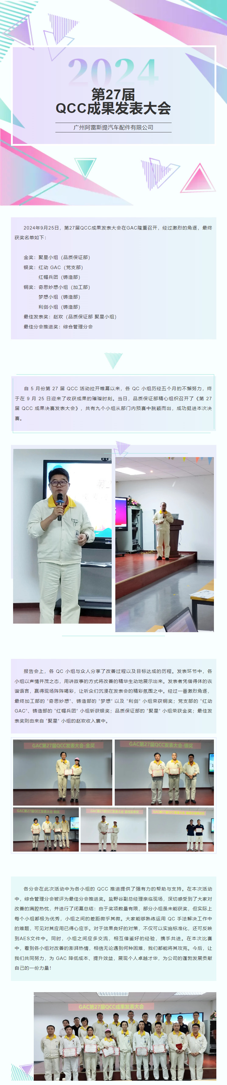 第 27 屆 QCC 成果決賽發表大會圓滿舉辦
