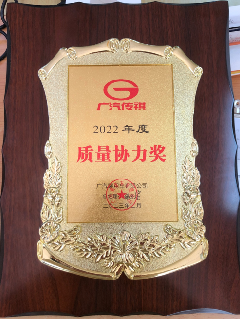 我司榮獲廣汽傳祺2022年度“質(zhì)量協(xié)力獎(jiǎng)”
